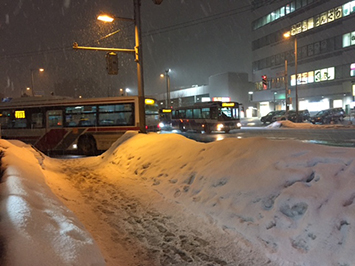 道路に雪が残っているところがあって、朝と夜は特に滑りやすくて、気をつけないといけませんでした。